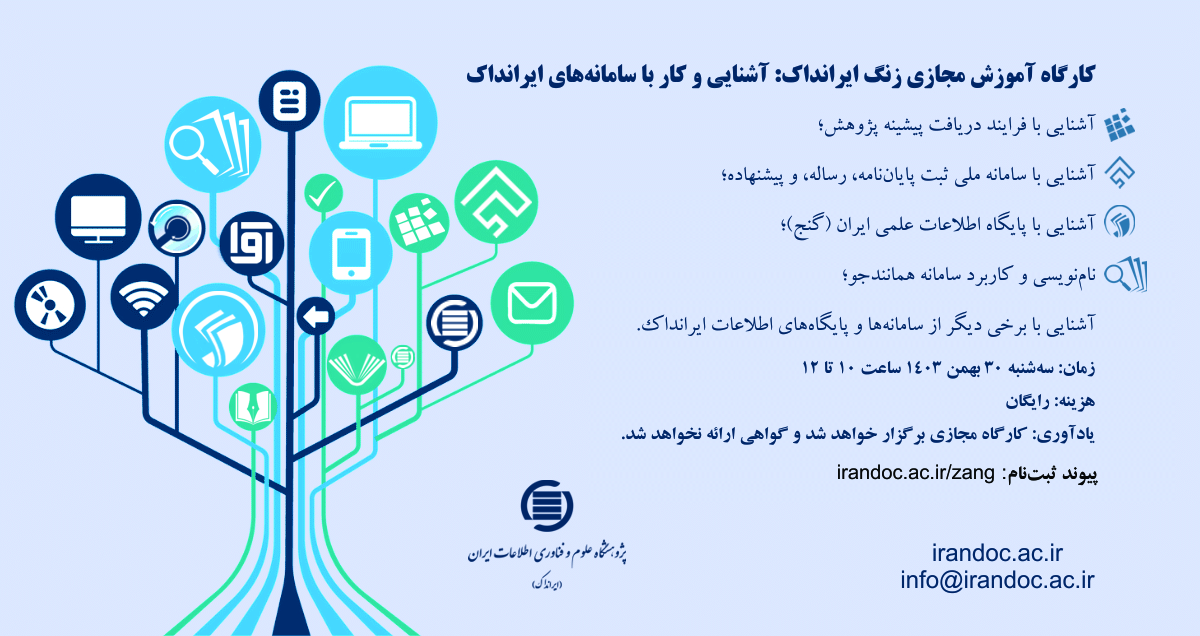 کارگاه آموزشی مجازی زنگ ایرانداک، آشنایی و کار با سامانه های ایرانداک